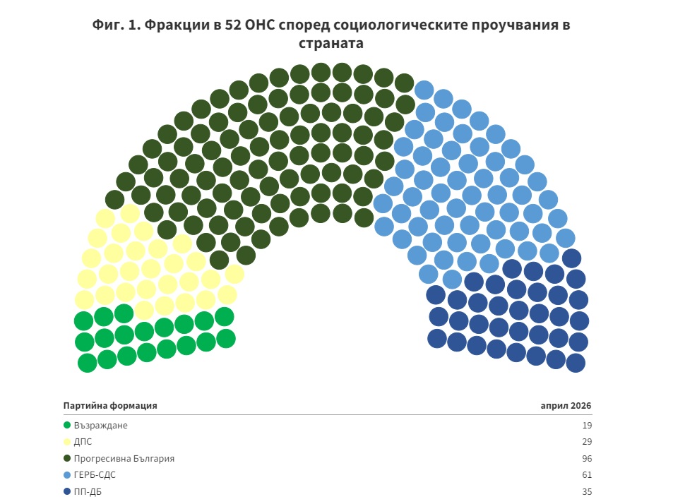 Консолидираната прогноза за гласуването в страната и в чужбина за 52-то НС показва, че при такова разпределение на мандатите първата политическа сила няма да може самостоятелно да си осигури парламентарно мнозинство от 121 народни представители въпреки очакваното привличане на значителен дял от вота. В този контекст двупартийна коалиция изглежда възможна както между „Прогресивна България“ и ГЕРБ–СДС, така и между „Прогресивна България“ и ПП–ДБ.