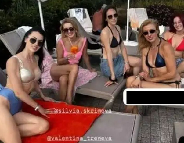 На Поморийския плаж тя не позира сама, а е в компания на близки приятелки. С които споделя последни моменти от лятното си приключение.